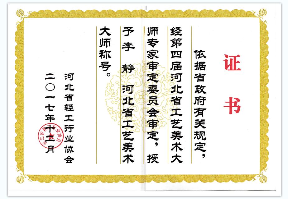 祝賀久藝園林藝術(shù)總監(jiān)李靜授予河北省工藝美術(shù)大師稱號。